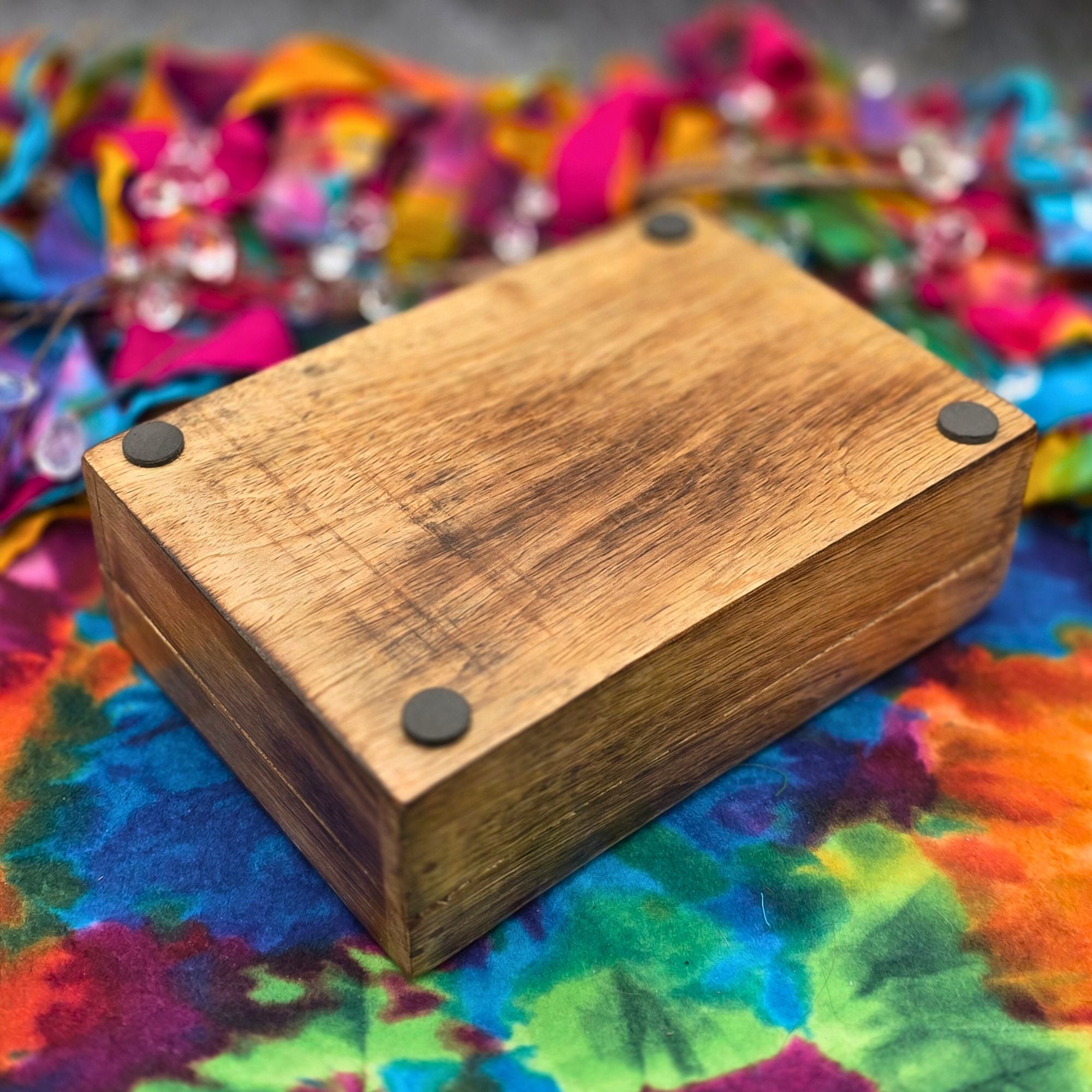 Inside, the box is soft black velvet-lined, protecting cherished items while creating a sacred space for reflection, gratitude, and surrender. Many use this as a traditional God Box, placing written prayers, worries, desires, or gratitude notes inside as a daily practice of letting go and turning things over to a Higher Power.