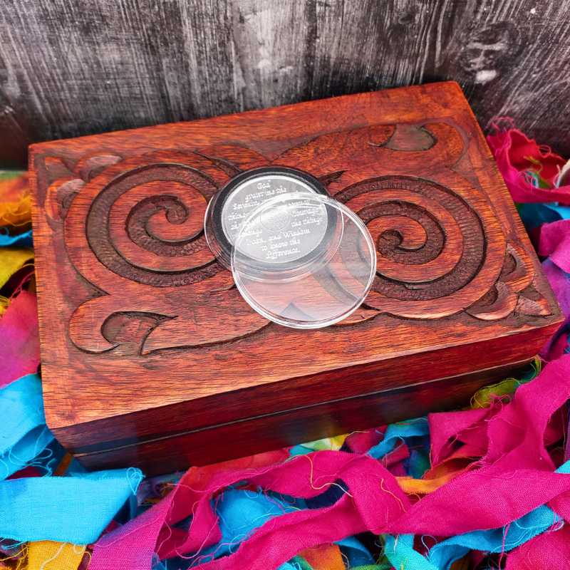 Hand Carved Swirl Relief Etched Wood AA Chip Holder God Box Recovery Gift Keepsake